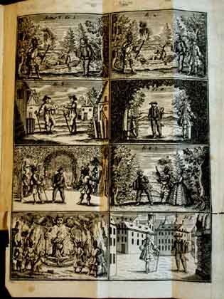 Erster von fünf Kupferstich-Bilderbogen zu den Szenen